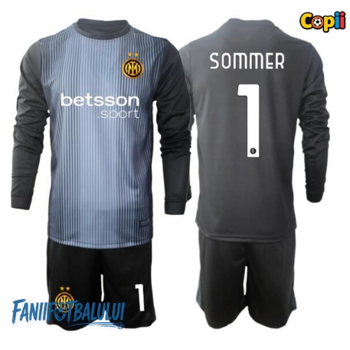 Inter Milan Yann Sommer #1 Portarii Echipament de Fotbal Replică 2025-26 Copii Acasa Mâneci Lungi (+ Șorturi)