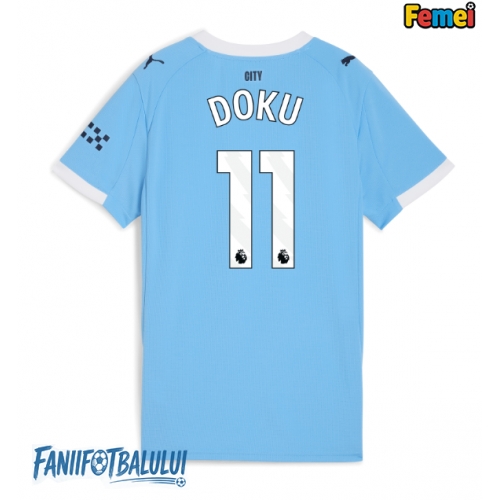Manchester City Jeremy Doku #11 Tricou Fotbal Replică 2025-26 Femei Acasa
