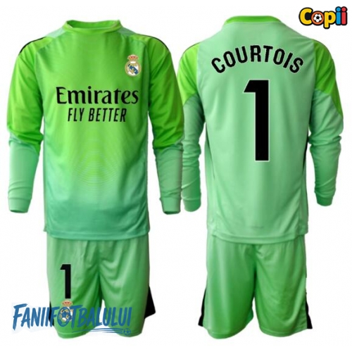 Real Madrid Thibaut Courtois #1 Portarii Echipament de Fotbal Replică 2025-26 Copii Deplasare Mâneci Lungi (+ Șorturi)